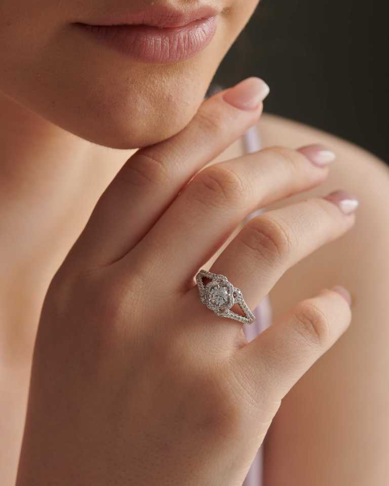 Excellent Cut Four Petal Halo, Round Solitaire Ring Lab Grown Diamond Solitaire Ring Eternity Band for Party and Gift