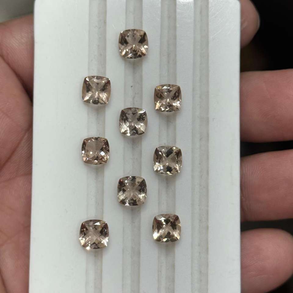 อัญมณีมอร์แกนไนต์ธรรมชาติทรงหลวมตัดเป็นชิ้นเดียว