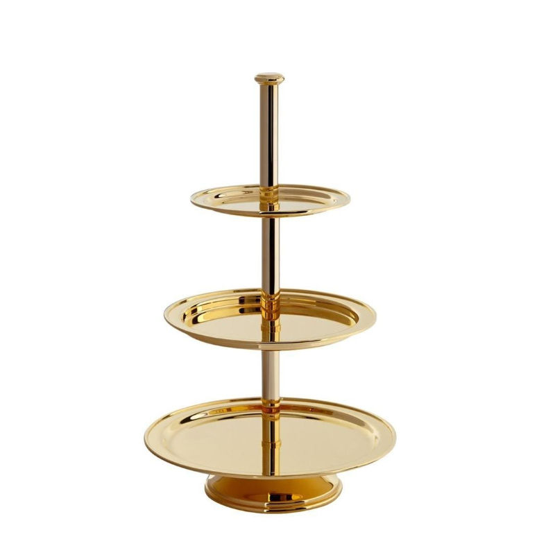 ขาตั้งเค้กทรงกลมชุบทองเหลือง ดีไซน์สวยงาม พร้อมขาตั้งเค้กสามชั้น สำหรับตกแต่งงานแต่งงาน งานวันเกิด