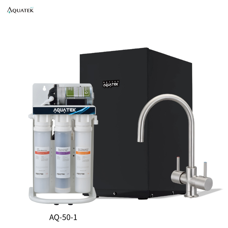 เครื่องทำน้ำร้อน-เย็นใต้ซิงค์ ดีไซน์สวยงาม ประหยัดพลังงาน รุ่น AQ-3222B แบบแลกเปลี่ยนความร้อน พร้อมระบบกรอง RO (AQ-50-1)