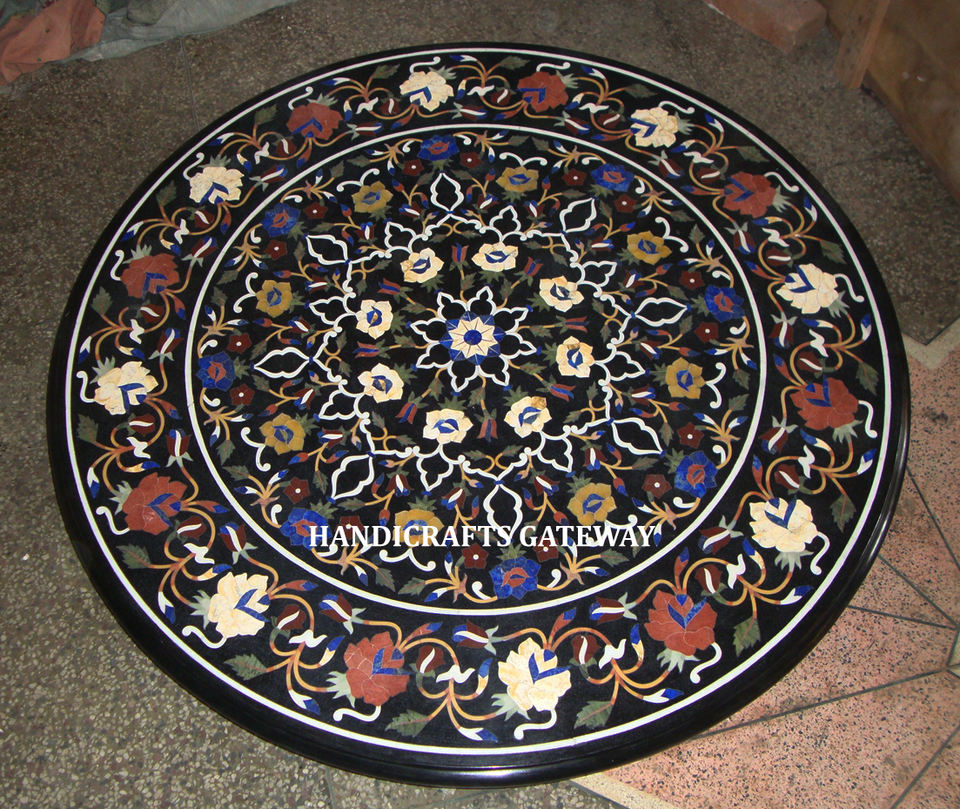 ท็อปโต๊ะหินอ่อนสีดำฝังหินอ่อนแบบฝังลายดอกไม้ทรงกลมใช้ตกแต่งบ้านด้วยราคาที่ดีที่สุด