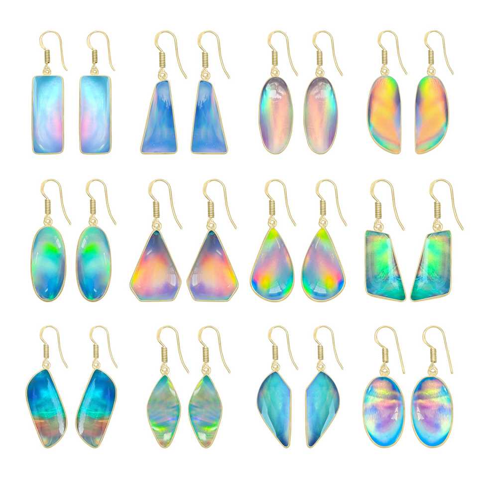 ต่างหูห้อยทรงหยดน้ำ ประดับพลอยออโรร่าธรรมชาติ ประจำเดือนธันวาคม งานแฮนด์เมด ชุบทองบนทองเหลือง
