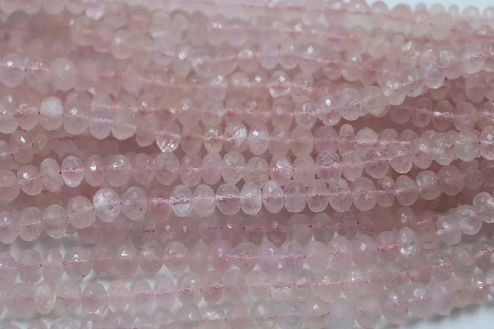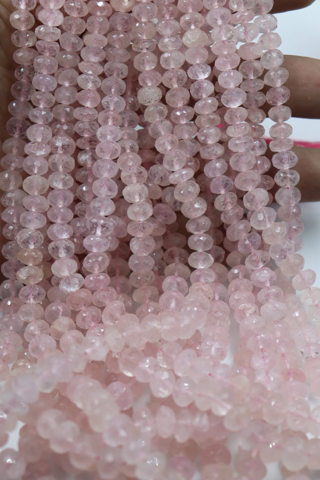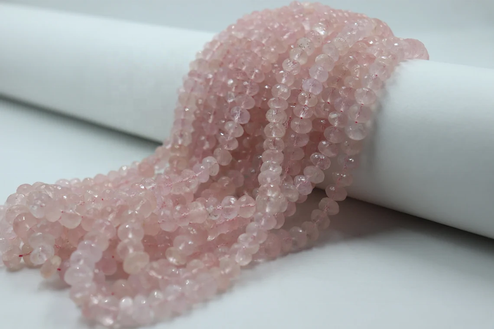 ลูกปัดมอร์แกไนต์ทรงรอนเดลเหลี่ยมเพชร