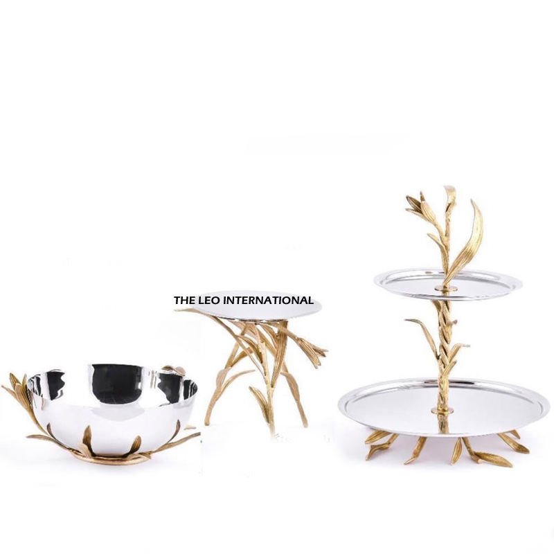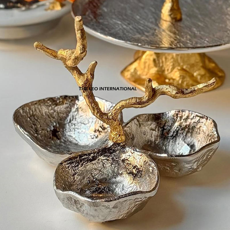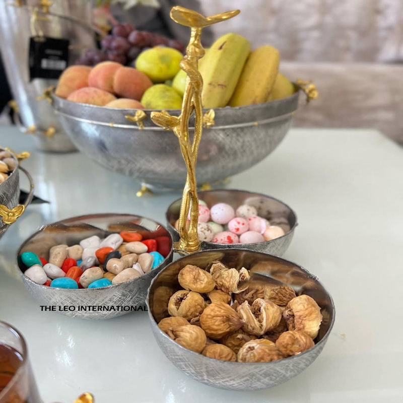 ชามผลไม้โลหะ3ช่องอุปกรณ์รับประทานอาหารฟรีชามผลไม้ดีไซน์หรูที่ยอดเยี่ยมและคุณภาพสูง