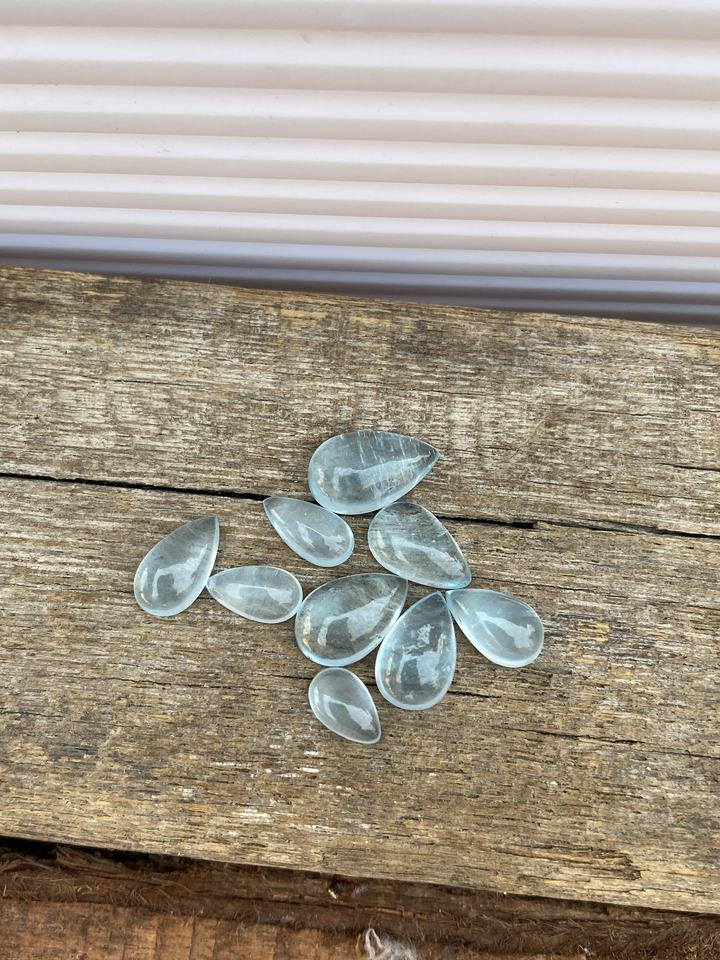 พลอยคาโบชอนทรงลูกแพร์สีอะความารีนจากธรรมชาติมีส่วนผสมที่ดีสำหรับการทำเครื่องประดับ17.15กะรัต