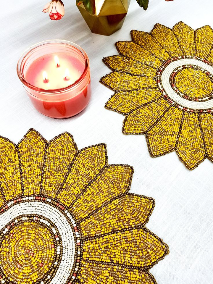แผ่นรองจานทำมือประดับลูกปัดทันสมัยคุณภาพเยี่ยม เป็นมิตรกับสิ่งแวดล้อม ปรับแต่งได้ ชุดแผ่นรองโต๊ะอาหาร ปักลายดอกไม้ ของตกแต่งงานแต่งงาน