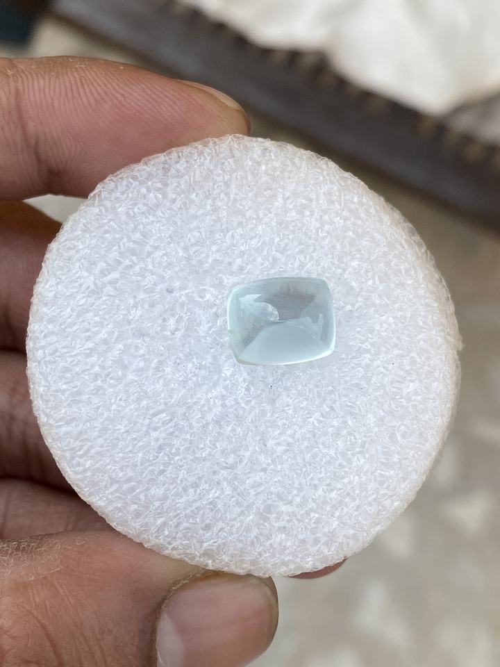 พลอยคาโมชอนสีธรรมชาติ5.40กะรัตพลอยอะความารีนทรงเบาะยาวหินหลวมเงางามดีสำหรับทำเครื่องประดับ