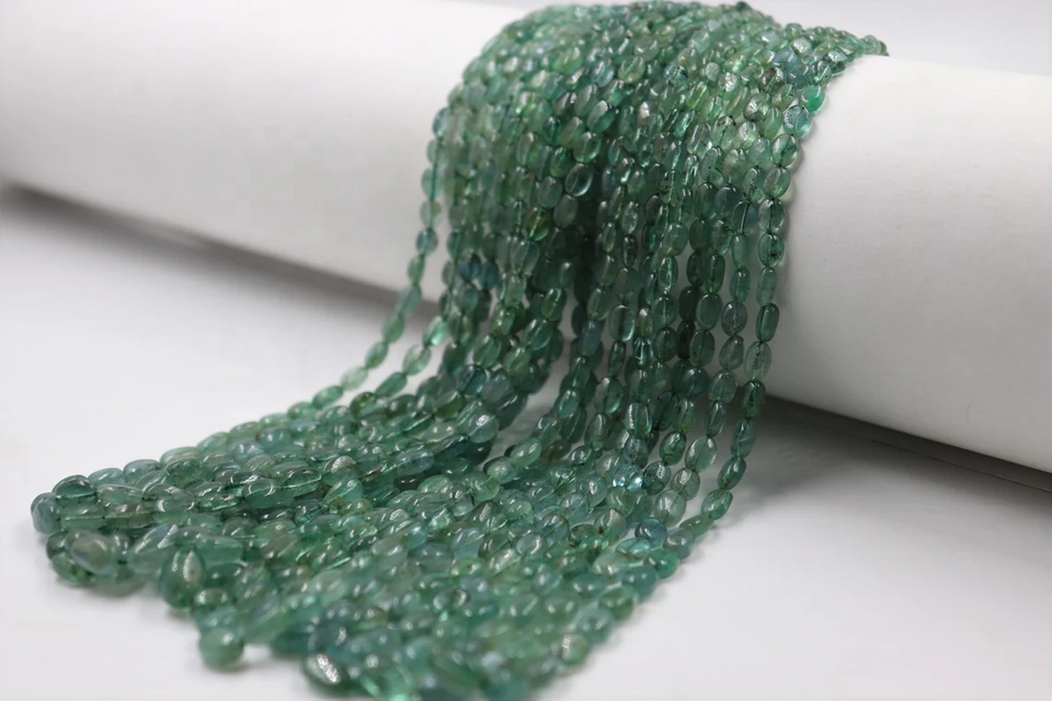 มรกตธรรมชาติคุณภาพเยี่ยม ขนาด 4-7 มม. รูปทรงรีเรียบ ลูกปัดจากร้านอัญมณีอินเดีย ความยาว 16 นิ้ว สำหรับทำเครื่องประดับ