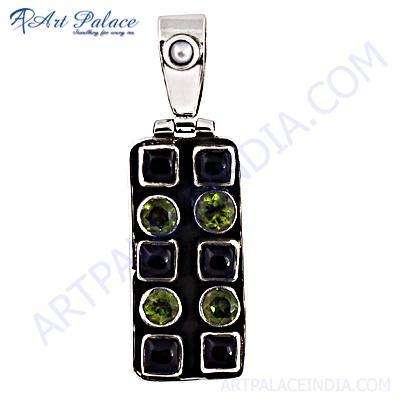 Excellent New Fashionable Black Onyx,Pearl and Peridot Silver Pendant