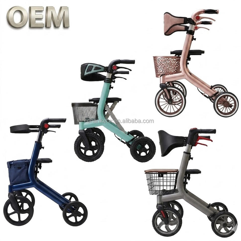 รถช่วยเดินแบบมีที่นั่งสำหรับผู้สูงอายุและผู้พิการ น้ำหนักเบา ใช้งานสะดวก ไม่ลื่นไถล ผลิตในไต้หวัน (OEM) ทนทาน สีสันปรับแต่งได้ ใช้ช่วยในการใช้ชีวิตประจำวัน