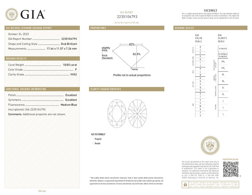 เพชรทรงวงรีทรงหลวม100% ผ่านการรับรอง10.05กะรัต F สี VVS2สดใส100% วงรีจากอินเดีย