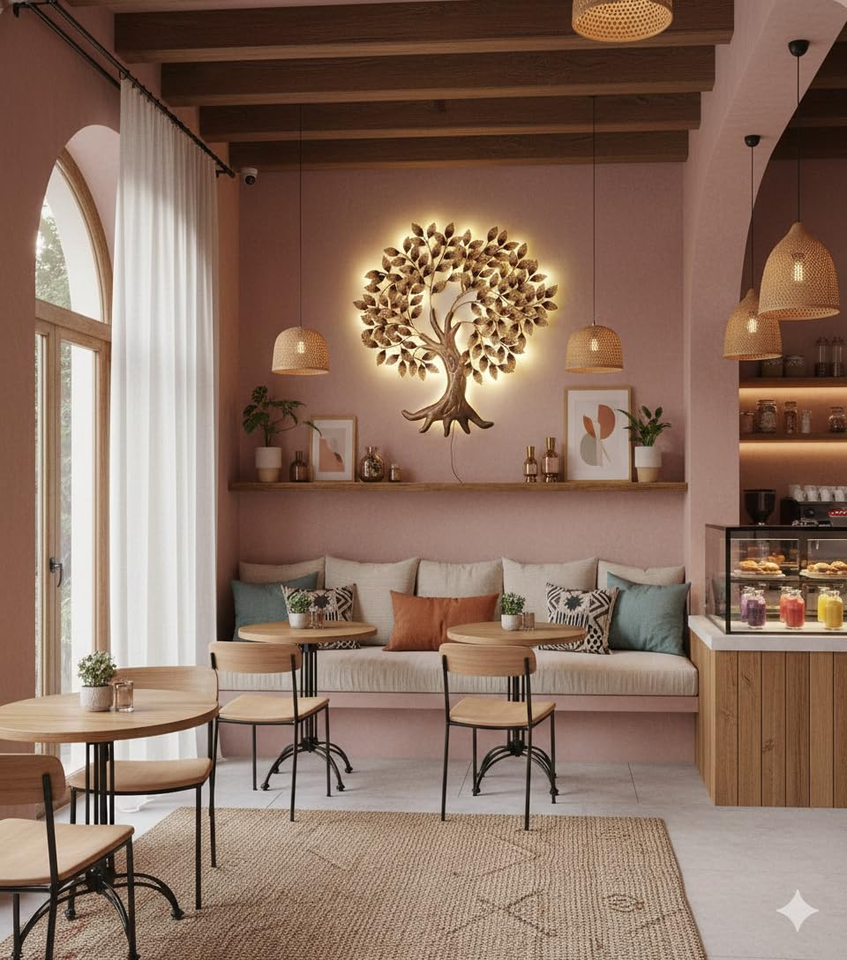 งานศิลปะติดผนังรูปต้นไม้ขนาดใหญ่ ทำจากโลหะ แข็งแรง ทนทาน สวยงาม พร้อมไฟ LED ตกแต่งด้วยเหล็กดัด ทำด้วยมือ เหมาะสำหรับห้องนั่งเล่น ห้องนอน ห้องโถง สำนักงาน