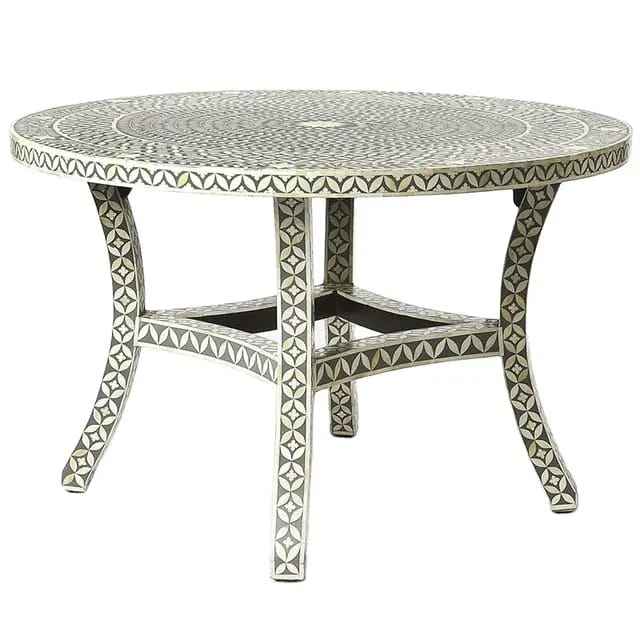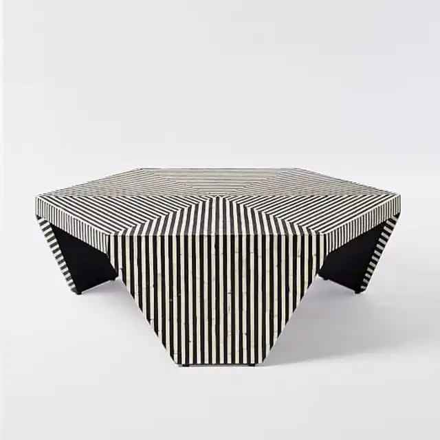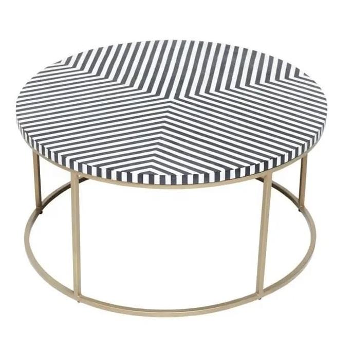 โต๊ะกาแฟแบบสามขาฝังกระดูกพร้อมเรซินสีดำและสีขาวทรงกลมสำหรับเฟอร์นิเจอร์ห้องนั่งเล่น