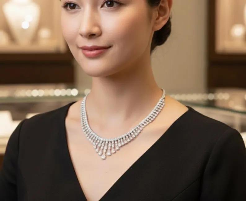 สร้อยคอเพชรดีไซน์เนอร์คุณภาพเยี่ยมสำหรับผู้หญิง ลุคหรูหรา เหมาะสำหรับโอกาสพิเศษ มีจำหน่ายทั่วโลก