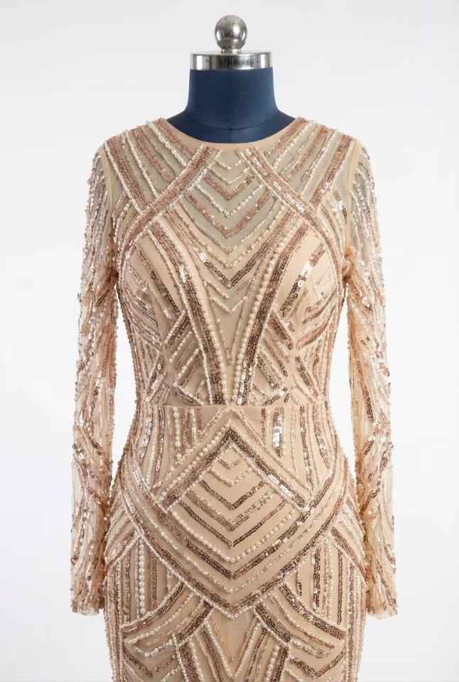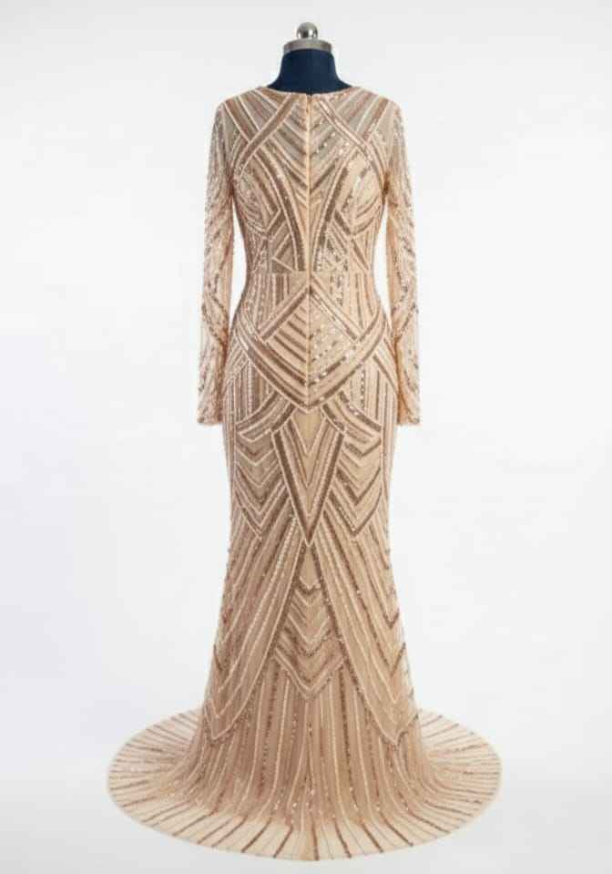 ชุดราตรียาวแขนยาวประดับลูกปัดคุณภาพเยี่ยมสำหรับงานกลางคืนและงานแต่งงาน มีจำหน่ายสำหรับการจัดส่งทั่วโลก
