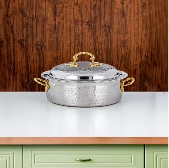Excellent Quality Handmade Luxury Casserole Round Shape Tabletop Kitchen Food Warmer Latest Arrival