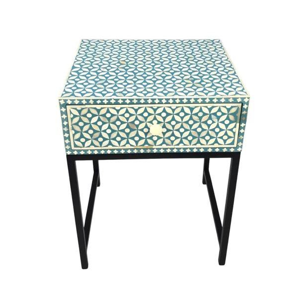 โต๊ะฝังกระดูกข้างเตียงทรงสี่เหลี่ยมขาเรียวตกแต่งบ้านด้วยงานฝีมือจากช่างฝีมือ
