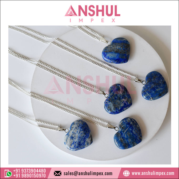 จี้รูปหัวใจ Lapis Lazuli เครื่องประดับแฟชั่นหรูหราดีไซน์ไม่ซ้ำใครพร้อมโซ่จากอินเดีย