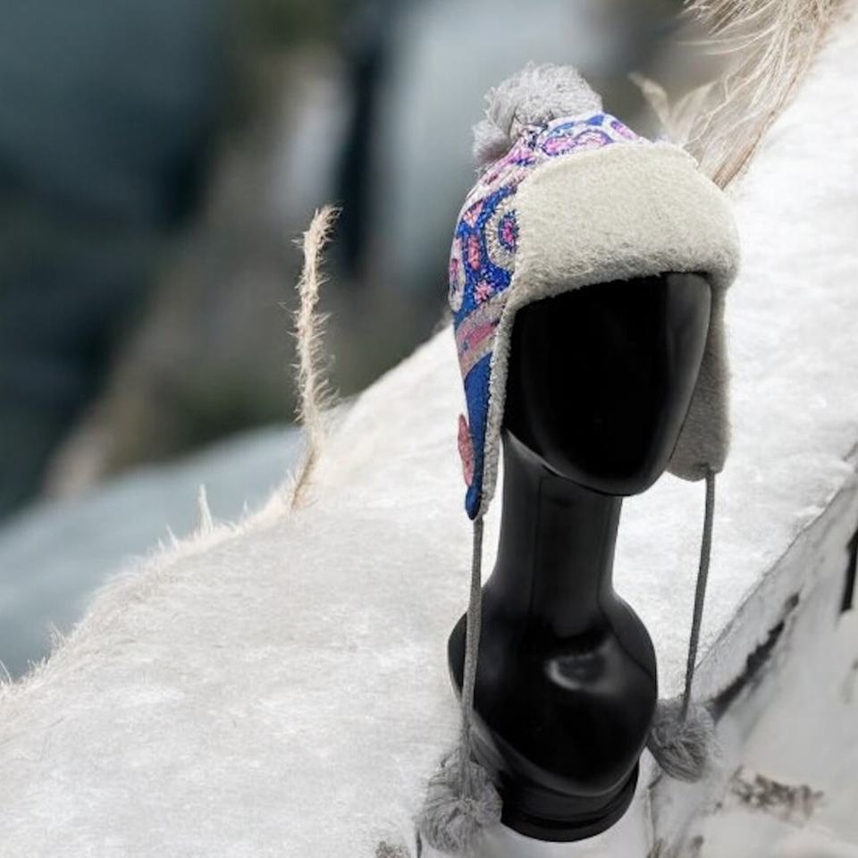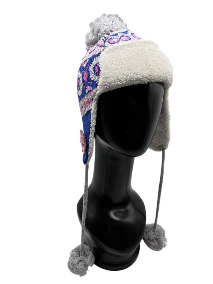 หมวกบีนนี่ไหมพรมลายแจ็คการ์ดคุณภาพเยี่ยม LANDBAS สำหรับผู้หญิง ฤดูหนาว ตกแต่งพู่ ปะหนัง พิมพ์ลายซิลิโคน
