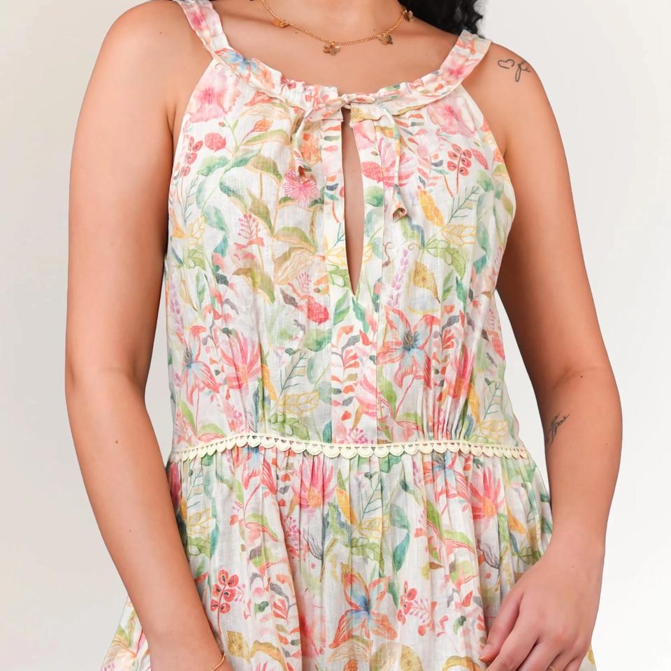 เดรสผ้าลินินคอตตอนลายดอกไม้คุณภาพเยี่ยมสำหรับผู้หญิง ทรงสวยเข้ารูป เหมาะสำหรับ OEM แบรนด์ส่วนตัว และสั่งซื้อจำนวนมากเพื่อขาย