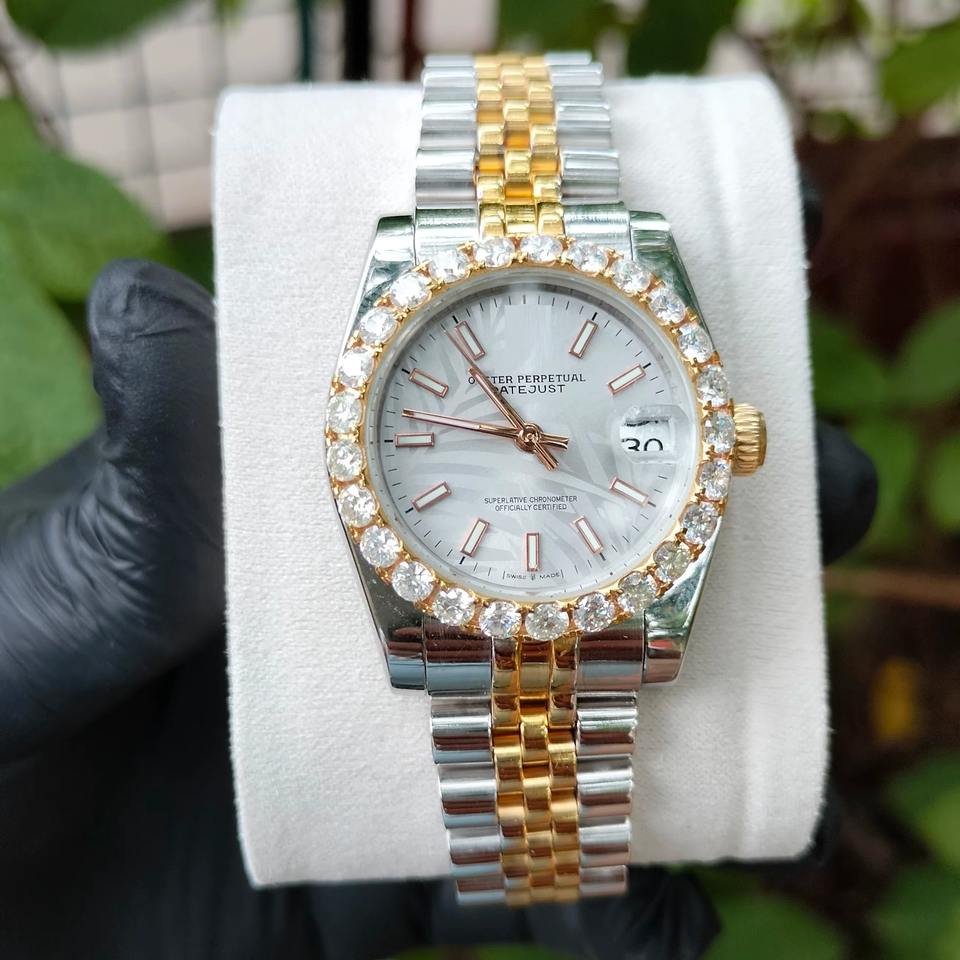 นาฬิกาหรูคุณภาพเยี่ยม โทนสีทอง ประดับเพชร พร้อมตัวบอกเวลาแบบเรืองแสง เหมาะสำหรับงานกลางคืน มีจำหน่ายแล้ว