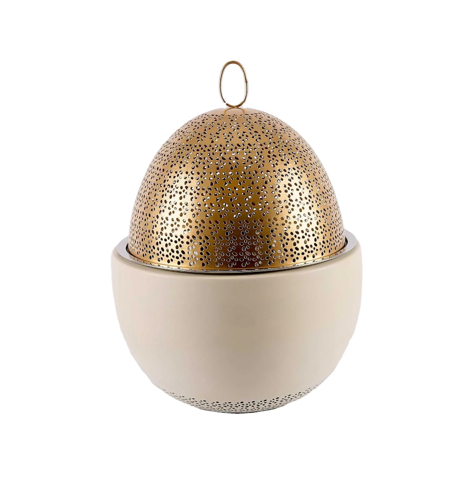 หม้อปรุงอาหารโลหะทรงกลมสำหรับตกแต่งโต๊ะในบ้านและห้องครัว