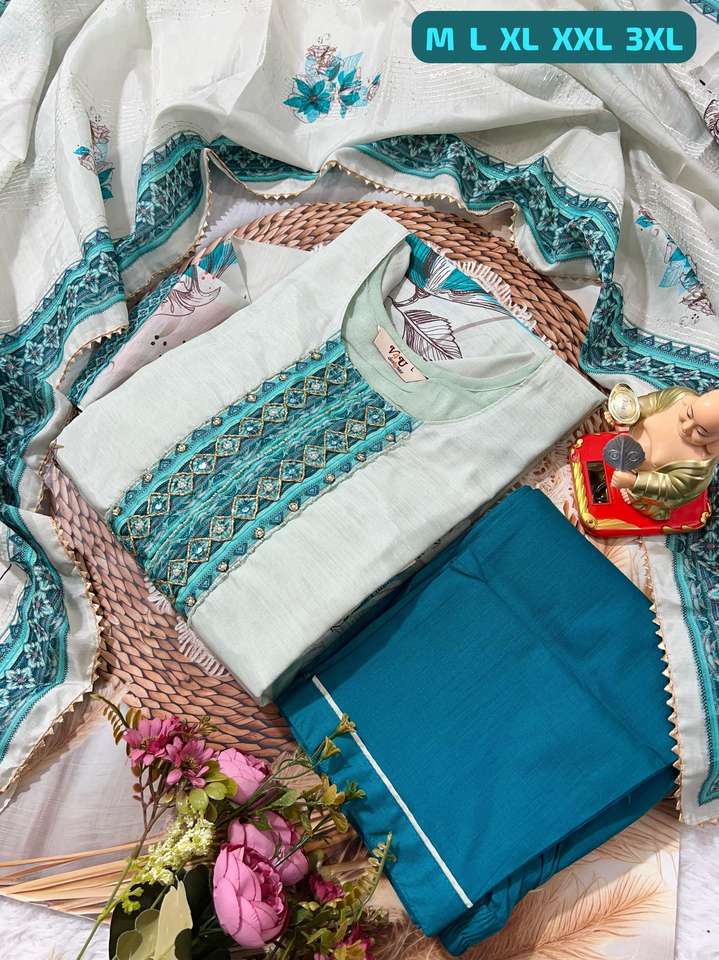 ชื่อผลิตภัณฑ์:ผ้าไหมมัสลินที่น่าตื่นตาตื่นใจกับการพิมพ์และมือทำงาน kurti กางเกงและ dupatta