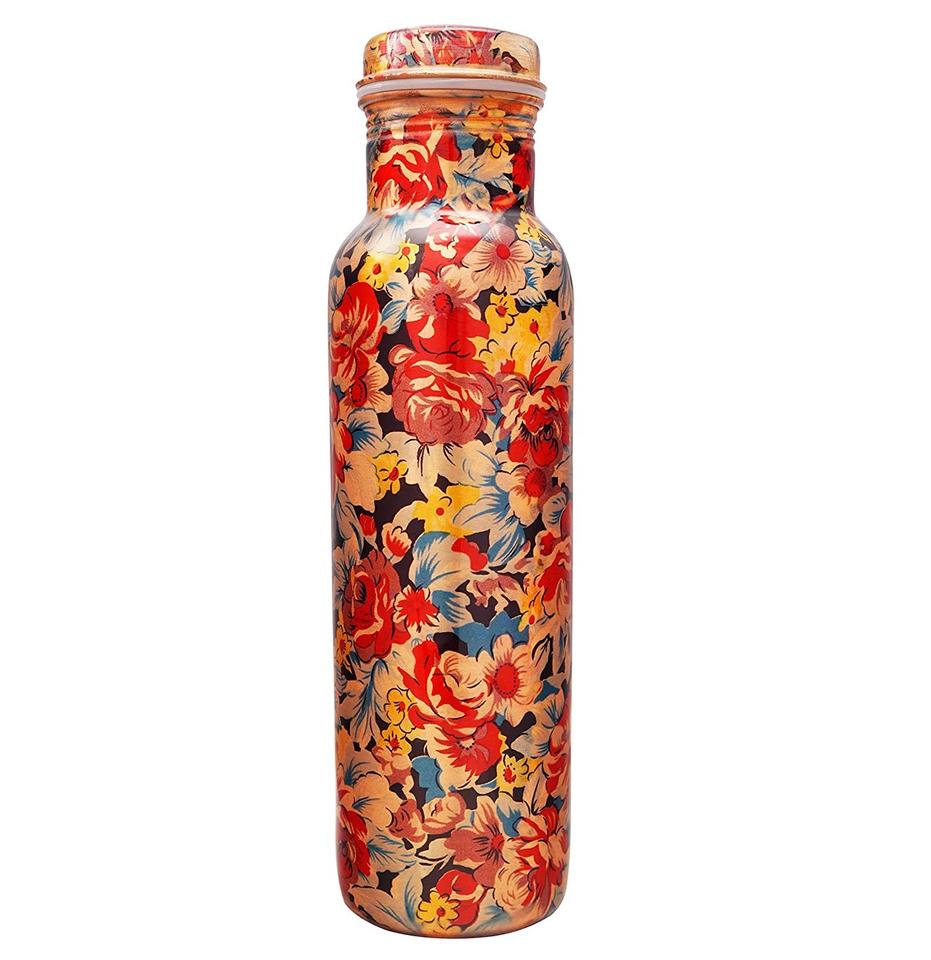ขวดน้ำทองแดงพิมพ์ลายเคลือบหลากสีอุปกรณ์ดื่มพลาสติกเพื่อสุขภาพ
