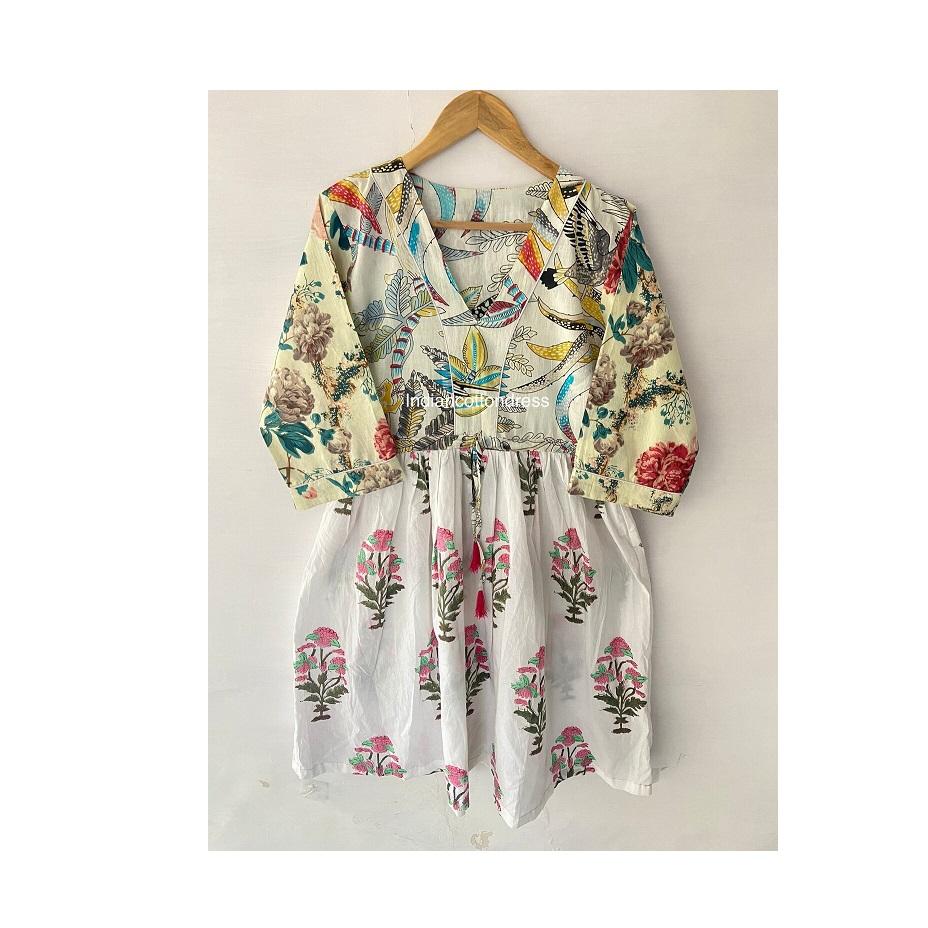 ชุดเดรสผ้าฝ้ายปะต่อสำหรับผู้หญิงชุดเดรสผ้าฝ้ายแท้พิมพ์ลายหลายลายใหม่