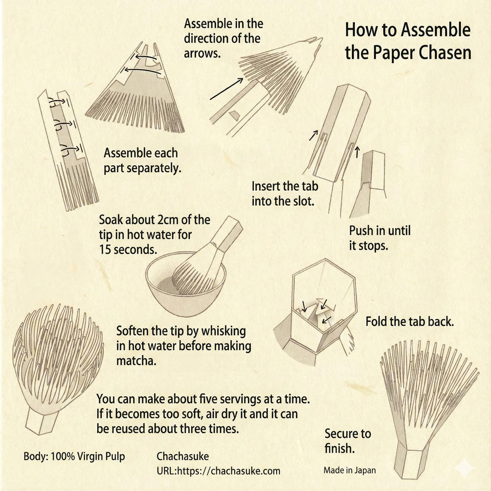 คุณภาพเยี่ยม ราคาคุ้มค่า ประกอบเองได้ บรรจุภัณฑ์แบบพับได้ วัสดุปลอดภัย ทำจากเยื่อกระดาษบริสุทธิ์ 100% ที่ไม่ผ่านการแปรรูป ที่ตีชาเขียวมัทฉะ