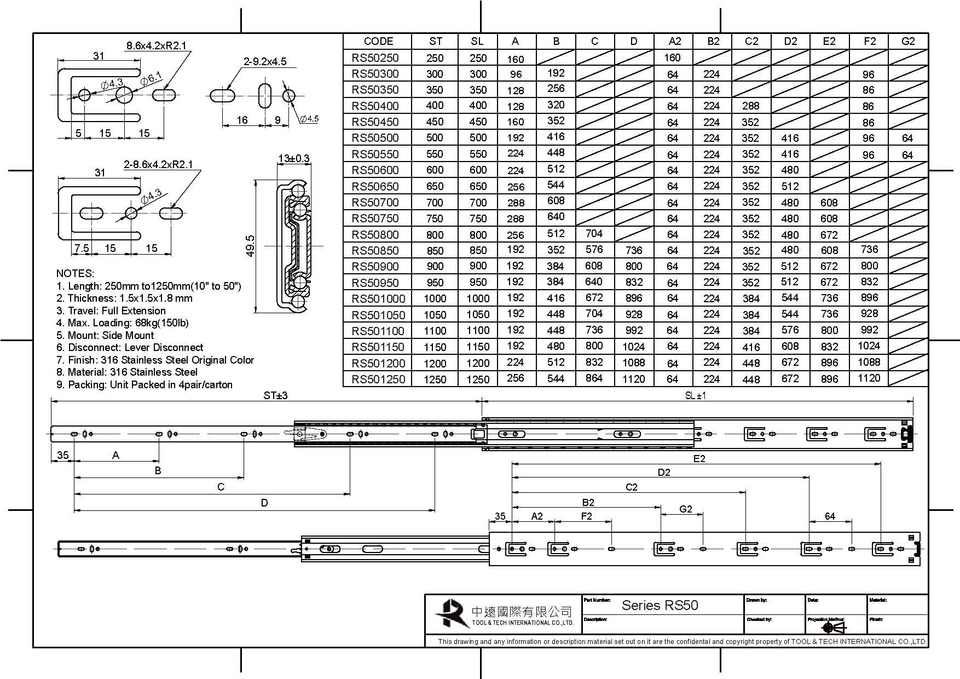 คุณสมบัติ:ขยายเต็มรูปแบบ, ติดตั้งง่าย, 3พับ, เงียบ, งานหนัก