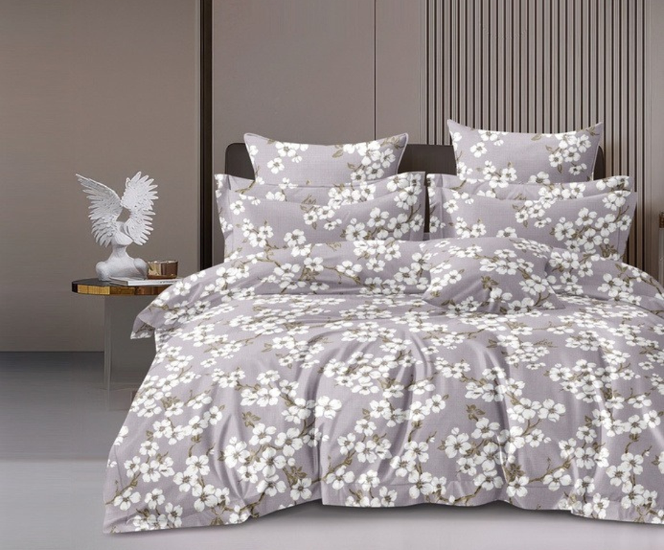 ผ้าปูที่นอนไมโครไฟเบอร์ลายดอกไม้สีเทาขาว เนื้อสัมผัสนุ่ม คุณภาพเยี่ยม 130+ GSM สำหรับใช้ในชีวิตประจำวัน ระบายอากาศได้ดี สวมใส่สบาย พร้อมจำหน่าย