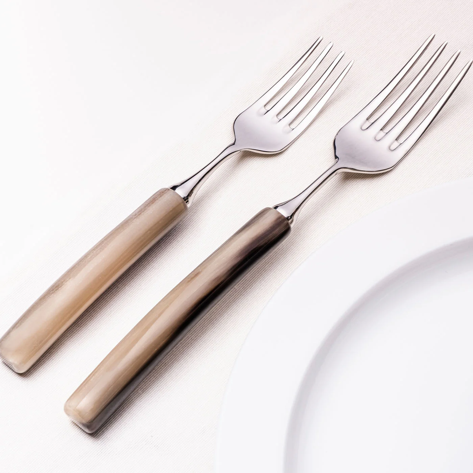 ชุดช้อนส้อมสแตนเลสงานหัตถกรรมแบบกำหนดเองด้ามจับเขาควาย