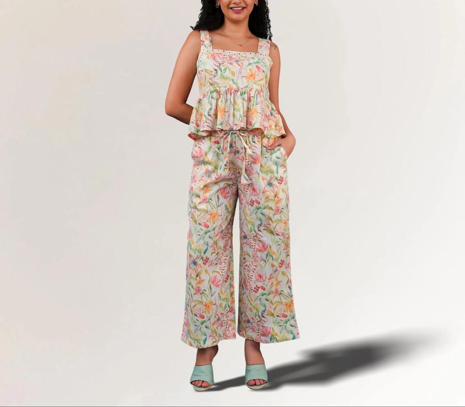 หมายเลขรุ่น:Linen Cotton Floral Co-Ord Set for Women