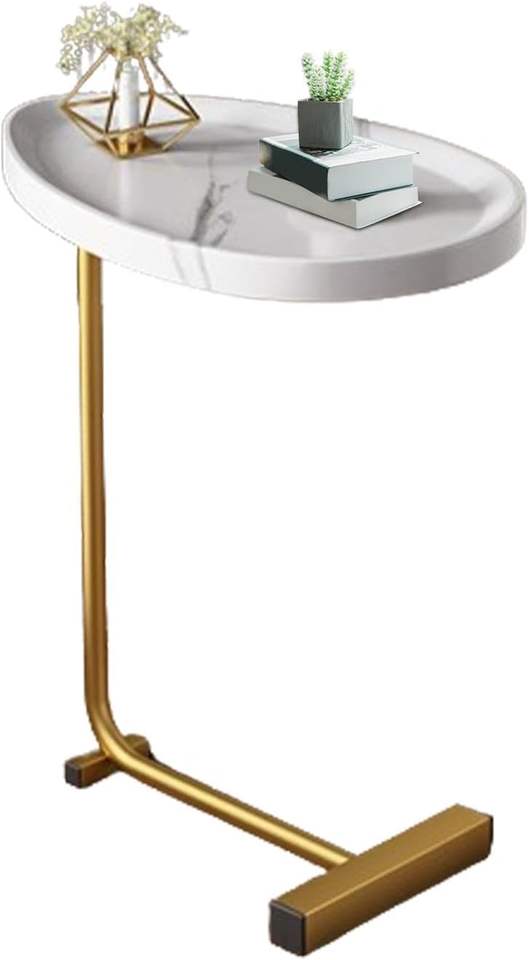 โต๊ะด้านข้างโลหะเคลือบด้านสำหรับใช้งานอเนกประสงค์ใกล้กับโซฟาหรือทางเข้าโคมไฟหนังสือและต้นไม้