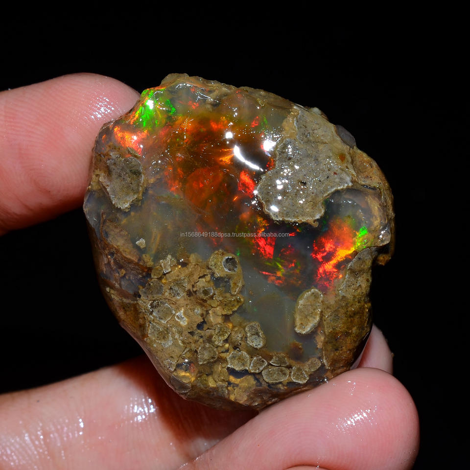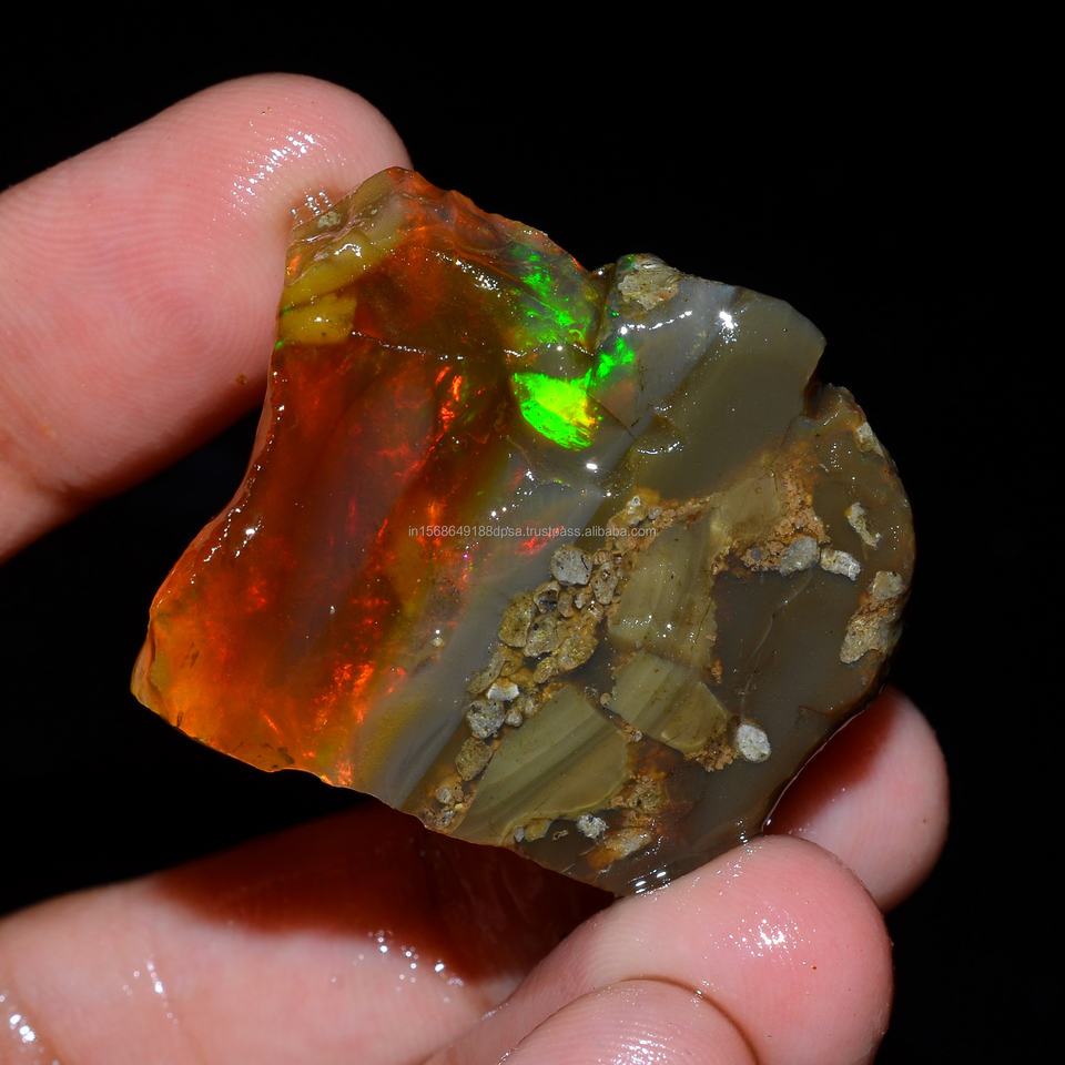 โอปอลเอธิโอเปียแบบหยาบ 4 ชิ้น คุณภาพเยี่ยม เกรดพรีเมียม 100% ธรรมชาติ แบบ Welo Fire Oily สำหรับทำเครื่องประดับ