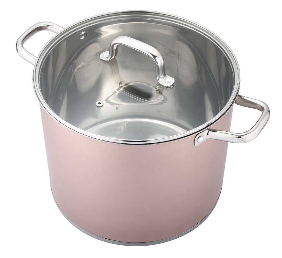 หม้อสต็อกคุณภาพเยี่ยมสำหรับงานหนัก ฐานเหนี่ยวนำเต็มใบ พร้อมมาตรวัดขนาดภายใน ขนาดใหญ่ ใช้กับเครื่องล้างจานได้