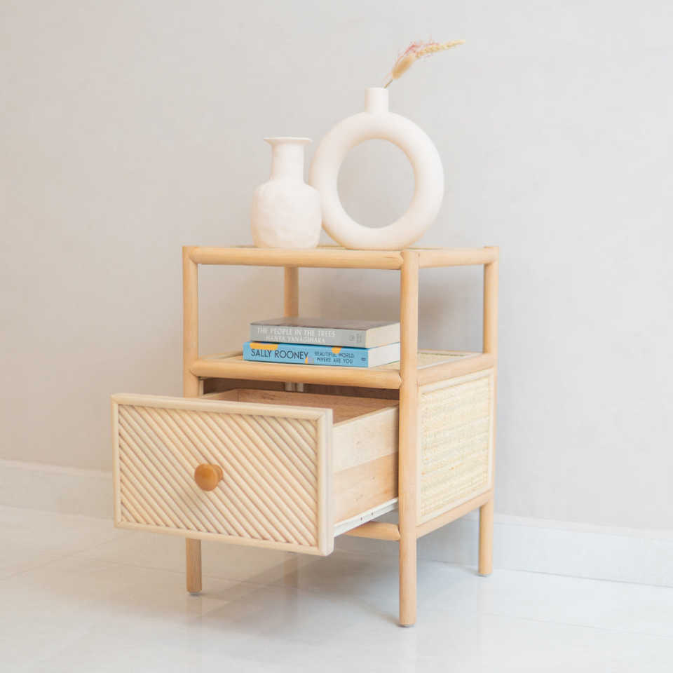 ตู้ลิ้นชักข้างเตียงทำจากไม้หวายทันสมัยเฟอร์นิเจอร์ห้องนอน