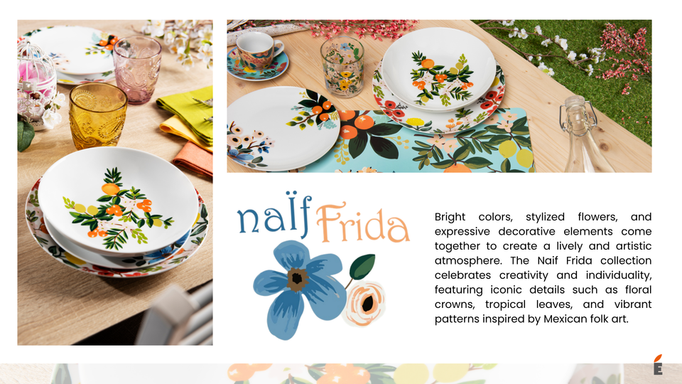 ชุดจานอาหารทรงกลม 18 ชิ้น ลายพืชและดอกไม้ Naif Frida โดย Excelsa ดีไซน์ที่ได้แรงบันดาลใจจากดอกไม้ ทนทานและสวยงาม