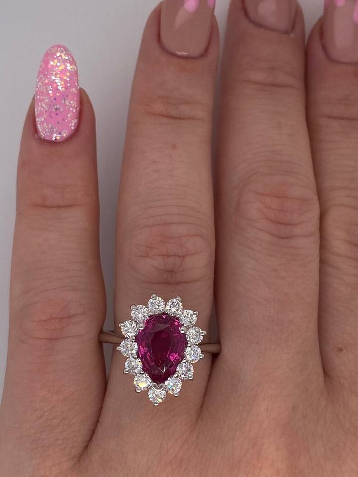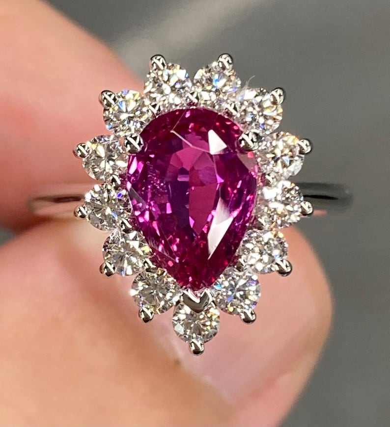 แหวนเงินประดับเพชรทับทิมและ D VVS สีแดงสดใสสุดพิเศษของขวัญเครื่องประดับสุดหรู
