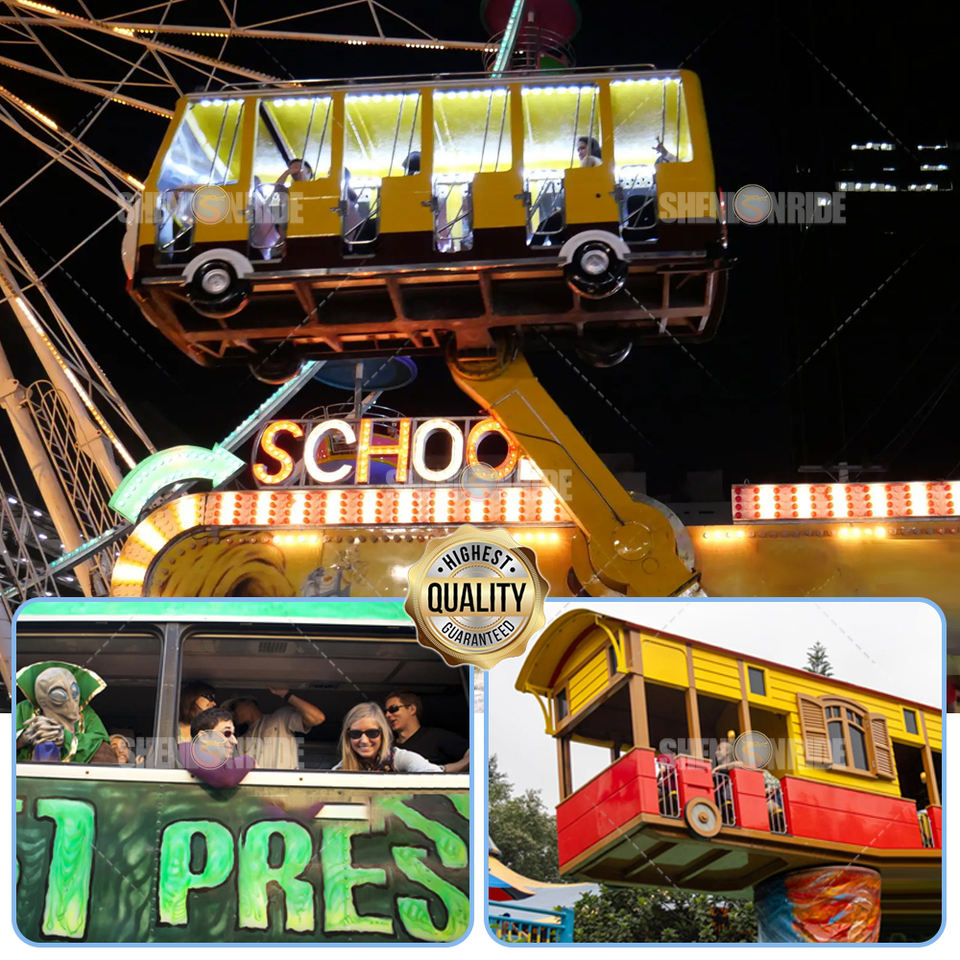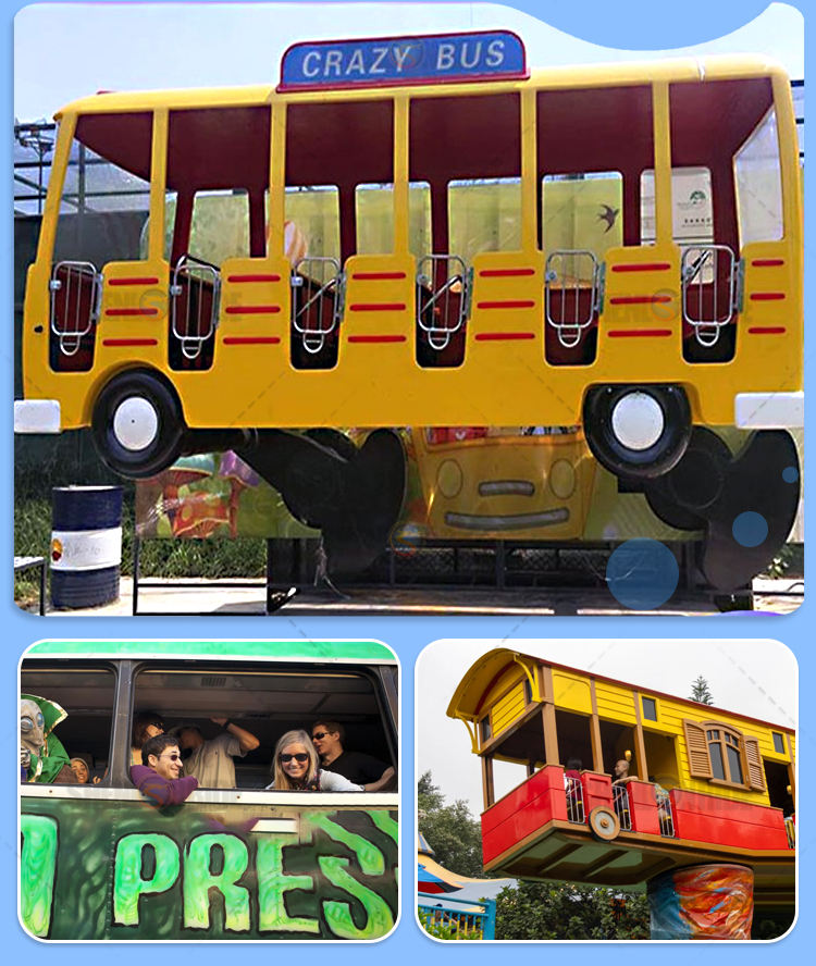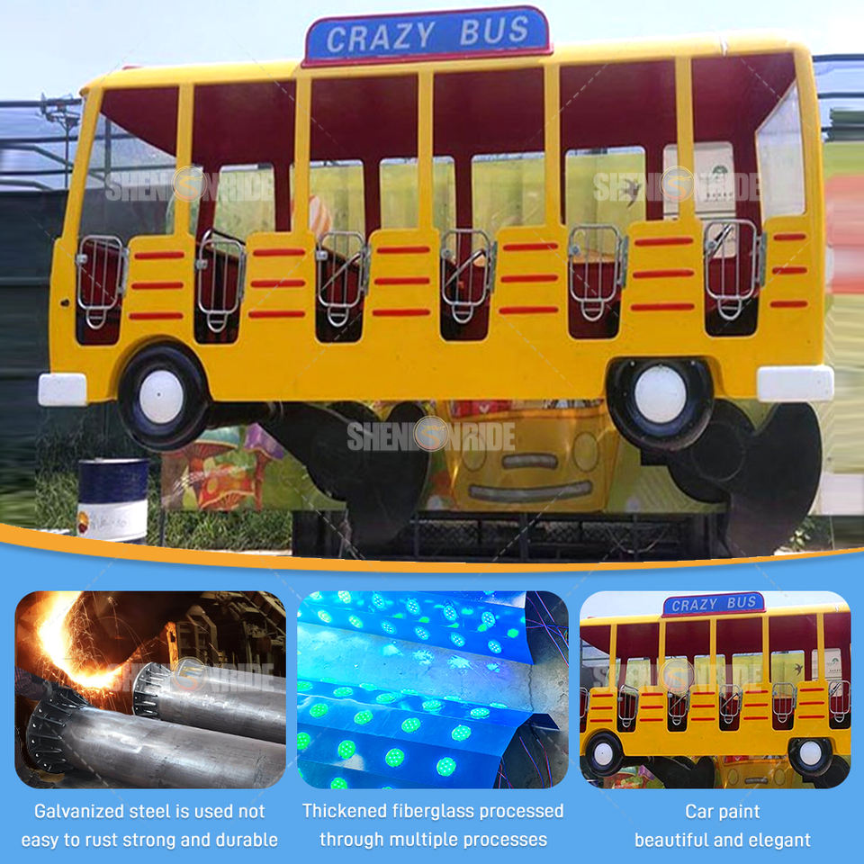 เครื่องเล่นสนุกสุดมันส์สำหรับเด็ก รถบัสบ้าๆ สวนสนุกในร่มและกลางแจ้ง ทำจากไฟเบอร์กลาสและโลหะ พร้อมจำหน่าย
