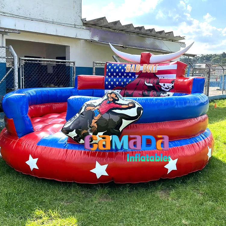 แผ่นรองเป่าลมเป่าลมสำหรับเด็กและผู้ใหญ่เครื่องจักรสำหรับสวนสนุกวัวกลางแจ้งที่น่าตื่นเต้น