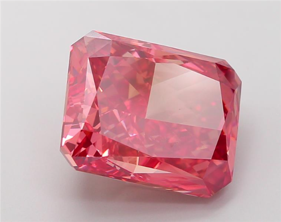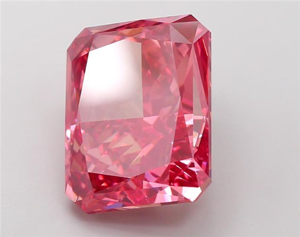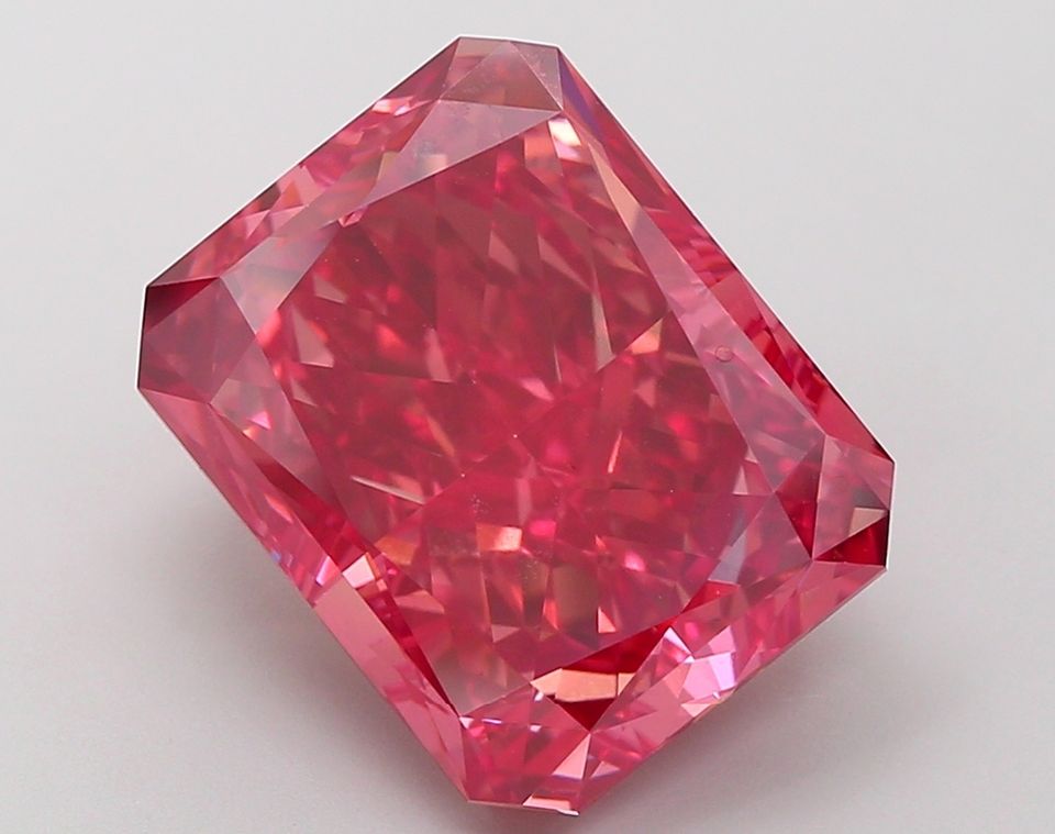 เพชรทรงเรเดียนต์คัท 10.53 กะรัต สีแดงสดแบบแฟนซี ผลิตในห้องปฏิบัติการด้วยเทคนิค CVD ได้รับการรับรองจาก IGI สำหรับงานออกแบบเครื่องประดับตามสั่ง