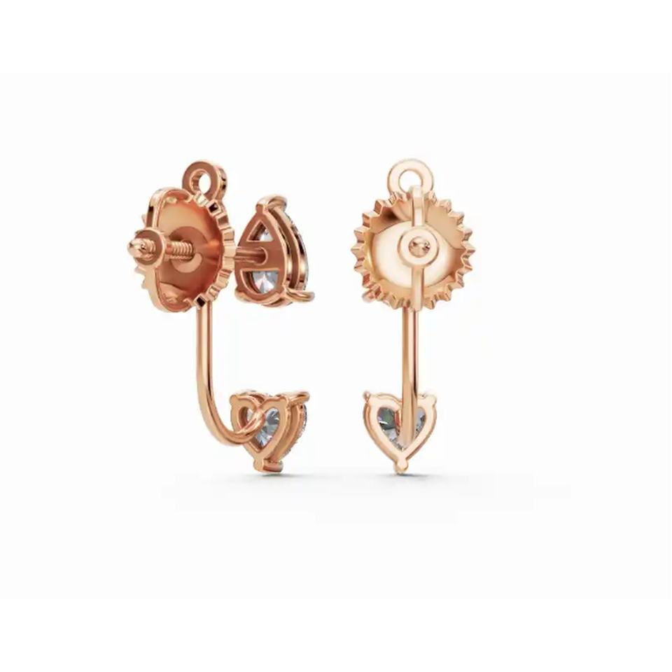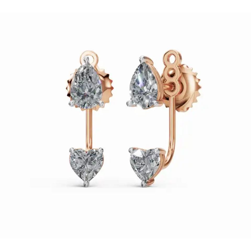 ต่างหูเพชรดีไซน์หรูหรา 14 กะรัต ทองคำแท้ ประดับเพชรทรงหัวใจและทรงลูกแพร์ ผลิตในห้องปฏิบัติการ ขายส่งจำนวนมาก รับผลิตแบบ OEM