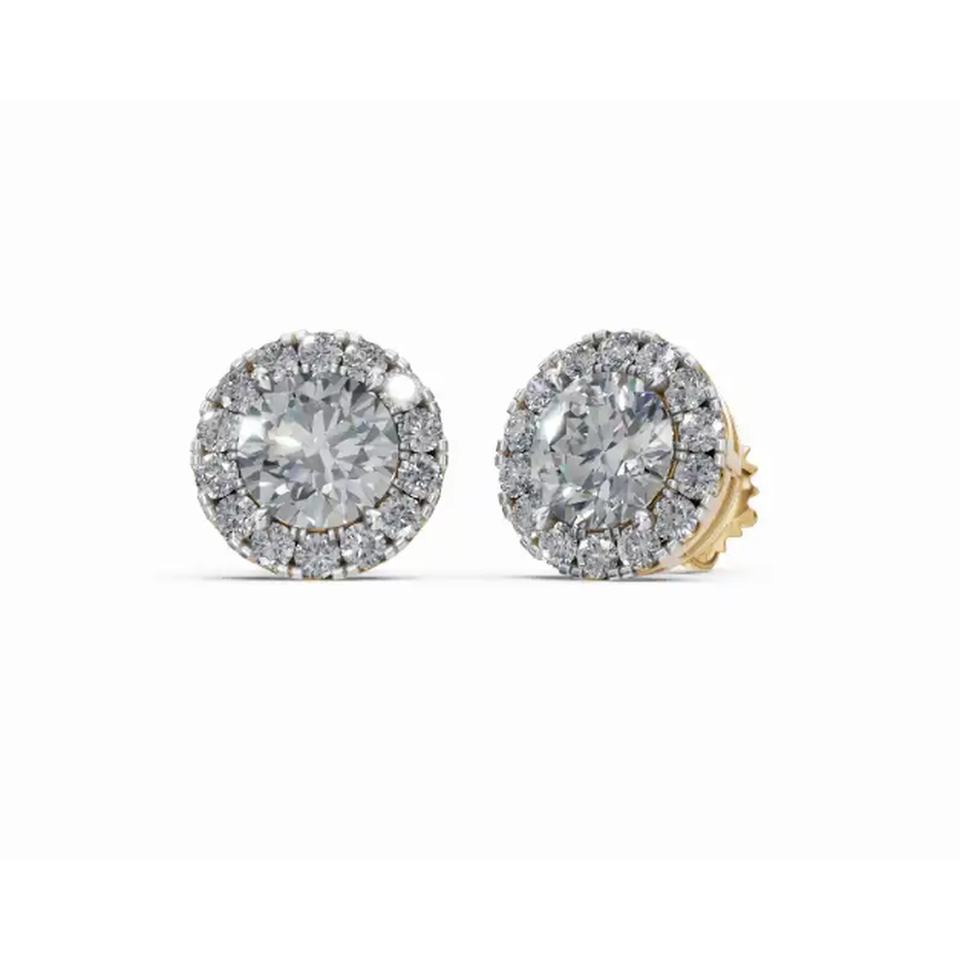 ต่างหูเพชรทรงกลมแบบ Halo of Radiance รุ่น Camila ทอง 14KT แท้ ผลิตจากเพชรเลี้ยงในห้องปฏิบัติการ จำหน่ายส่งจำนวนมาก