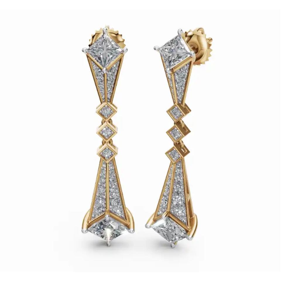 ต่างหูดีไซน์เนบิวลาสวรรค์ทองคำ 14KT แท้ พร้อมเพชรเจียระไนทรงกลมและทรงเจ้าหญิง ผลิตจากเพชรเลี้ยงในห้องปฏิบัติการ จำหน่ายส่งจำนวนมาก