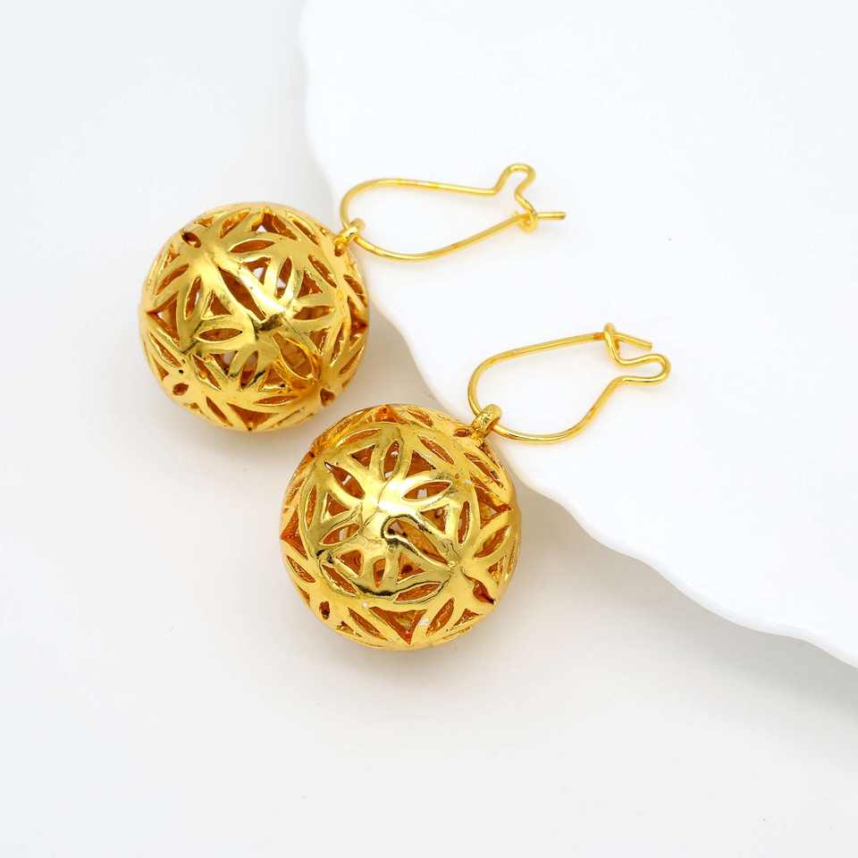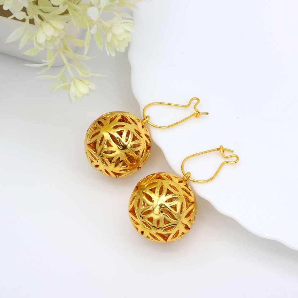 ลูกบอลกลมชุบทอง18K พิเศษละเอียดอ่อนทุกวันวัสดุทองเหลืองแบบมินิมอลเครื่องประดับห่วงคล้องหูสำหรับผู้หญิง