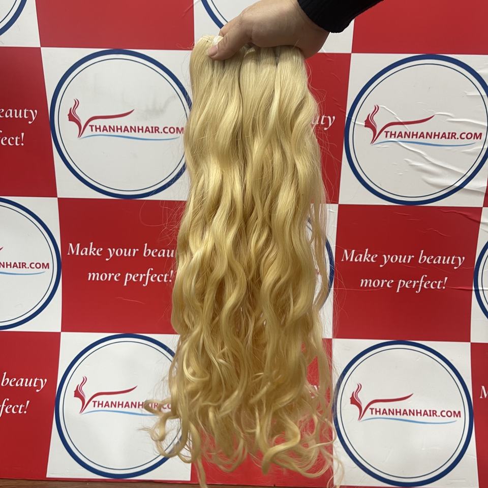 งานเซลวันศุกร์สีดำ! ผมมนุษย์บริสุทธิ์จากเวียดนามธรรมชาติ100% เส้นด้ายหยักศกธรรมชาติจัดทรงหนังกำพร้ามัดผมสีบลอนด์จาก Thanh An