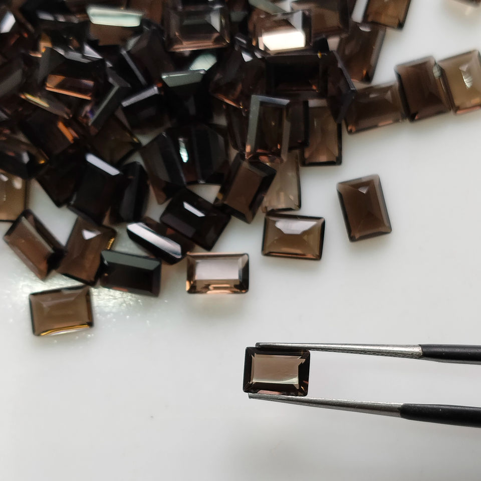 ควอตซ์สโมคกี้ธรรมชาติ 7x5 มม. ทรงบาแกตต์เจียระไนแบบสเต็ปคัต คุณภาพดีที่สุด สำหรับทำเครื่องประดับ