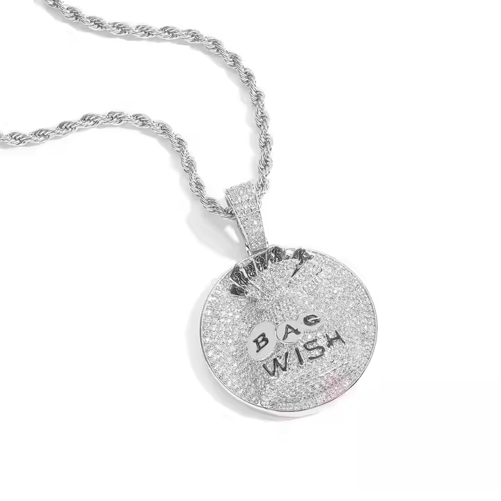 925พิเศษเงิน2นิ้วรอบตัดเพชรโมอิสจี้สร้อยคอทรงกระเป๋าสตางค์สตรีทแวร์เครื่องประดับแฟชั่นฮิปฮอป
